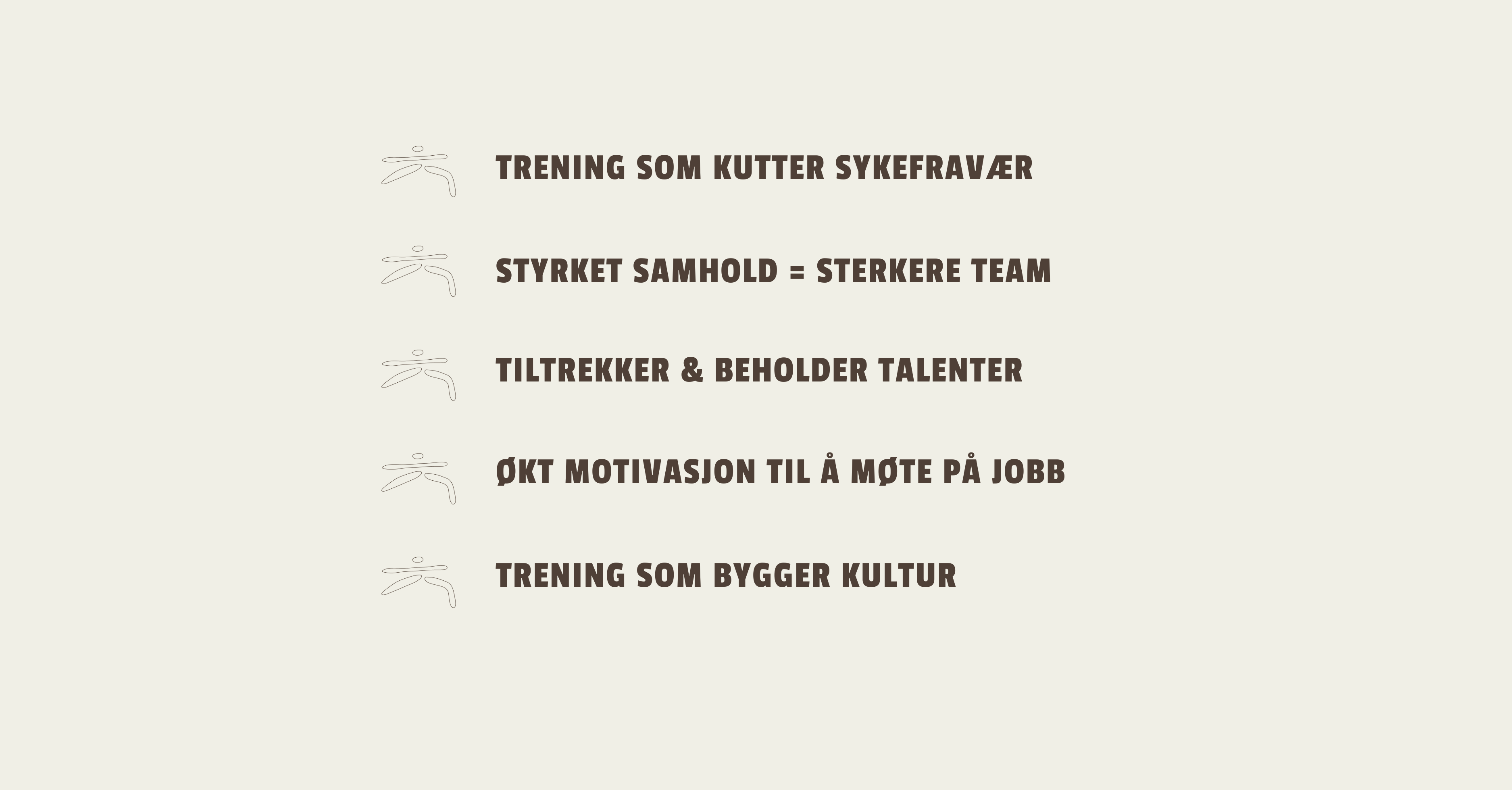 Trening på jobben gir mer enn sterkere kropper – det bygger team, øker trivsel og kutter sykefravær. Klar for en opplevelse som varer lenger enn økta? La oss ta første steg – sammen.